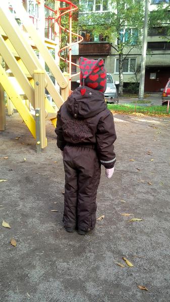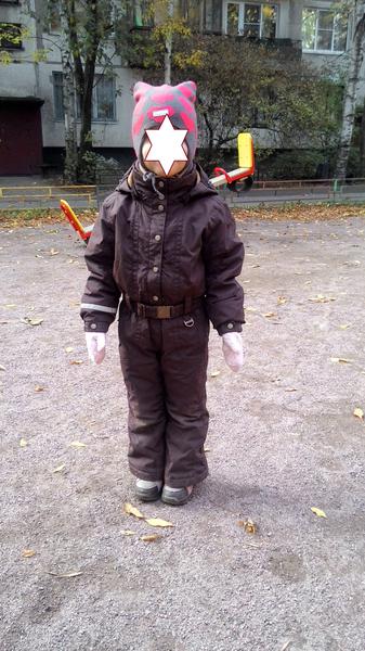В комплекте флисовый воротник, бирки внутри не срезаны. Стирка только спец средством! Начинали одевать в 2,5г, последний раз одели почти в 4.Несмотря на нюансы сам комбенизон еще крепкий, для прогулок во дворе или детском саду самое то.