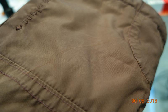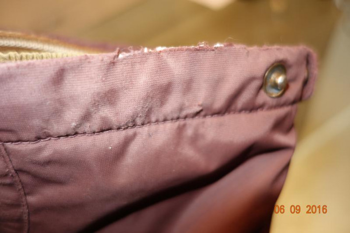 Дочь перелезала через заборчик, порвала между ног комбез, зашивали профессионально в ателье, ткань на вставку срезали с опушки, она искусственная родная, она есть, но только меховая половинка.