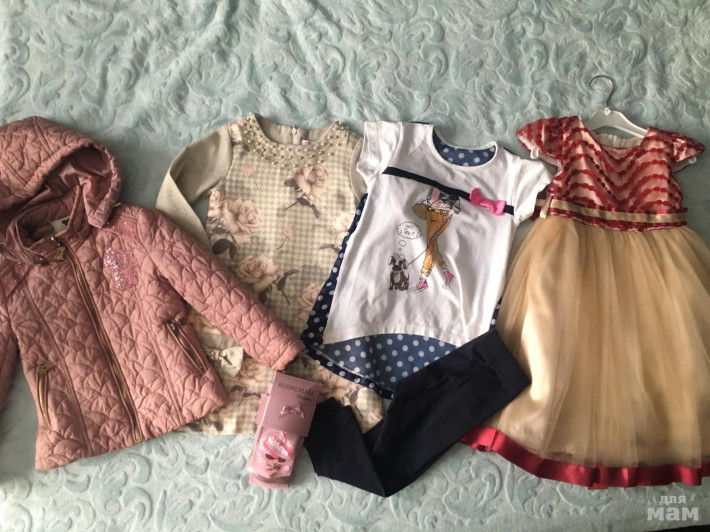 Куртка на тёплую осень на 3-4 года, платье серое ктс Турция, на стройную девочку, комплект аккон с лосинами размер 3 , стразики все на месте, спинка шифон , колготки новые BNM 3-4 года. Платье аккон одели 1 раз , размер 3 года . За всё 1700р с почтой