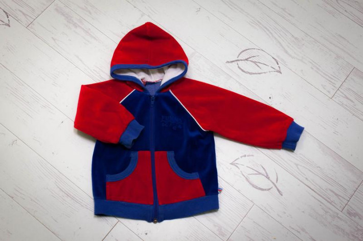 4. Велюровая кофта "Funny Kids" на молнии, с капюшоном. Размер около 92 см (маркировка не сохранилась). Цена 250 руб.