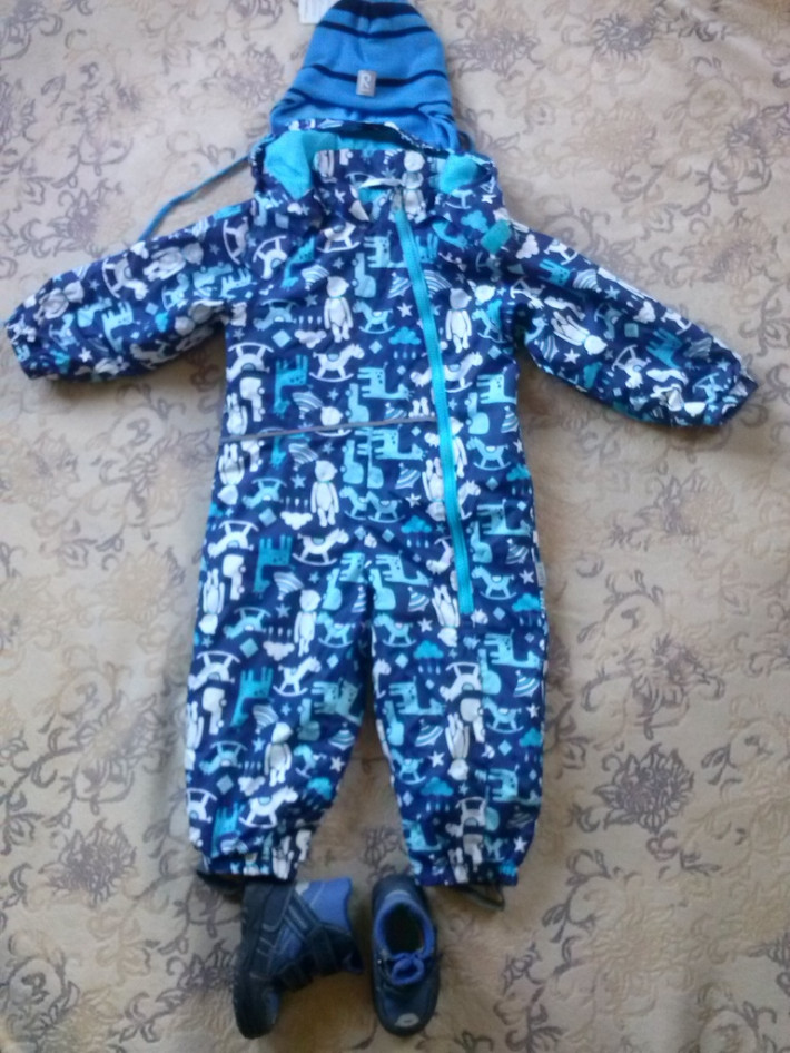 Комбинезон Lassie р.86 (+3) ,наверное, грамм 60 утеплитель, материал помягче, чем у реймы,но не продувает и не промокает, очень легкий, носили поздней осенью и ранней весной,потертость сзади, фото есть , 1300 руб.