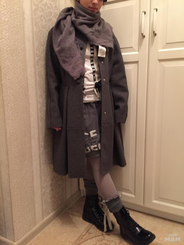 Пальто: 14 лет, рост 158, длина 87.5 см, рукав реглан от горловины 71 см.