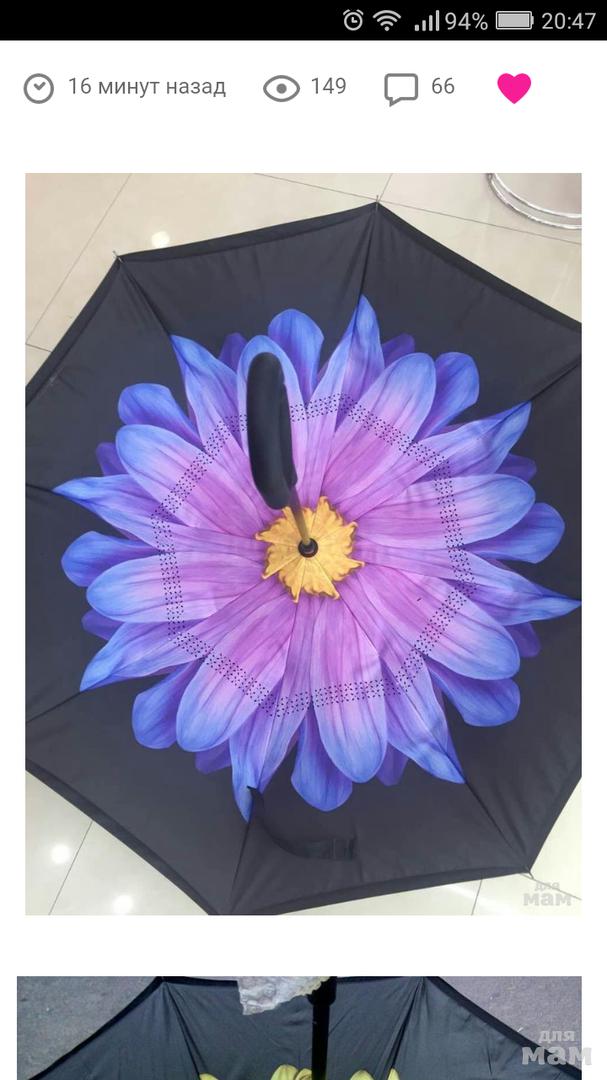 Супер удобный зонт! Складывается наоборот.Преимущества: