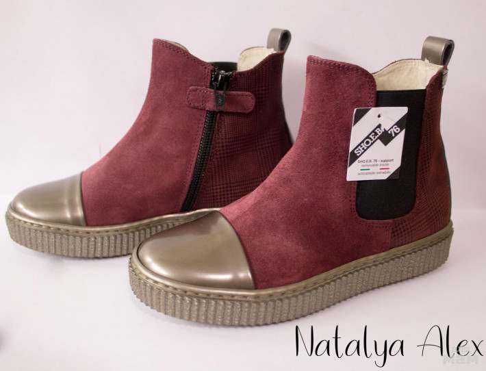 Супер стильные и оч носибильные боты!!! Универсальны по цвету (сочетание бордо и золото), и можно носить с юбками, брюками, шортами, платьями.