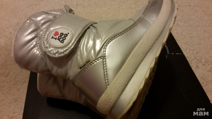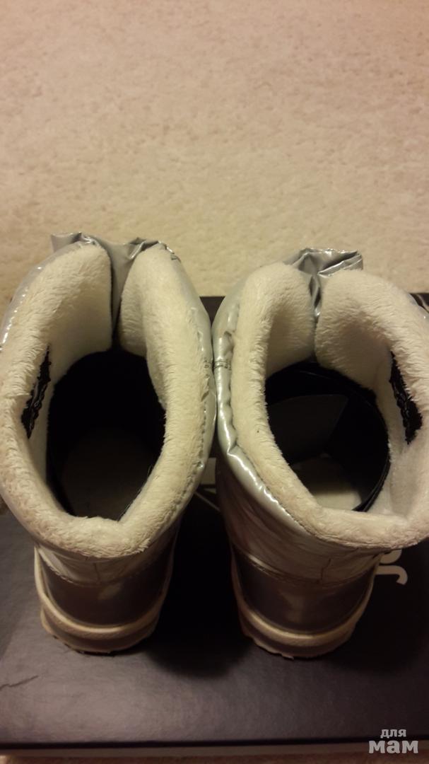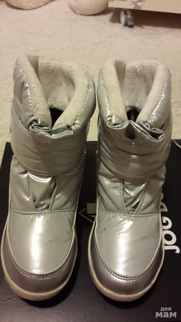 бренд...очень легкие не промокают и самое главное , что теплые, ножка в них вообще не мерзнет... Размер 30, по стельке 19 см...Состояние хорошее,есть небольшой нюанс, материал в нескольких местах приподнялся, но функции сапожек это не влияет....при носке не видно...фото прилагаю...