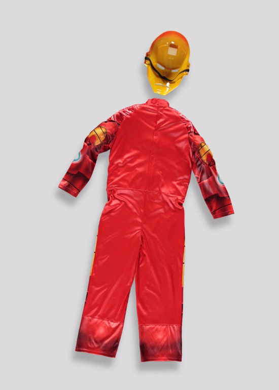 Костюм Железный человек Ironman фирмы Matalan. Слитный красивый костюм с мышцами, сзади застежки липучки. На груди зажигается и светится кружок. В комплекте маска.