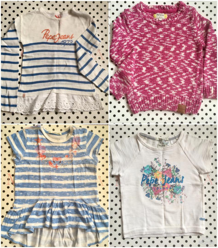 1. Джемпер (в полоску) - 500р.2. Джемпер ( бело/розовый)- 400р.3. Футболка/туника-400р.4. Футболка - 300р.