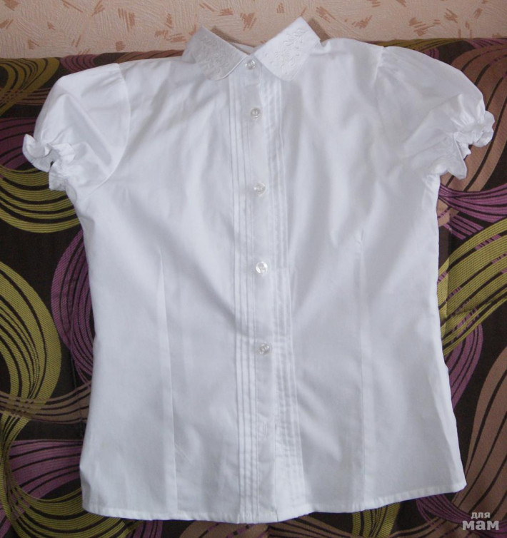 Еще одна блузка с коротким рукавом, разм. 140. Тоже одевалась очень мало, 2-3 раза. Название фирмы срезали, т.к. бирочка кололась))))) Состояние очень хорошее.