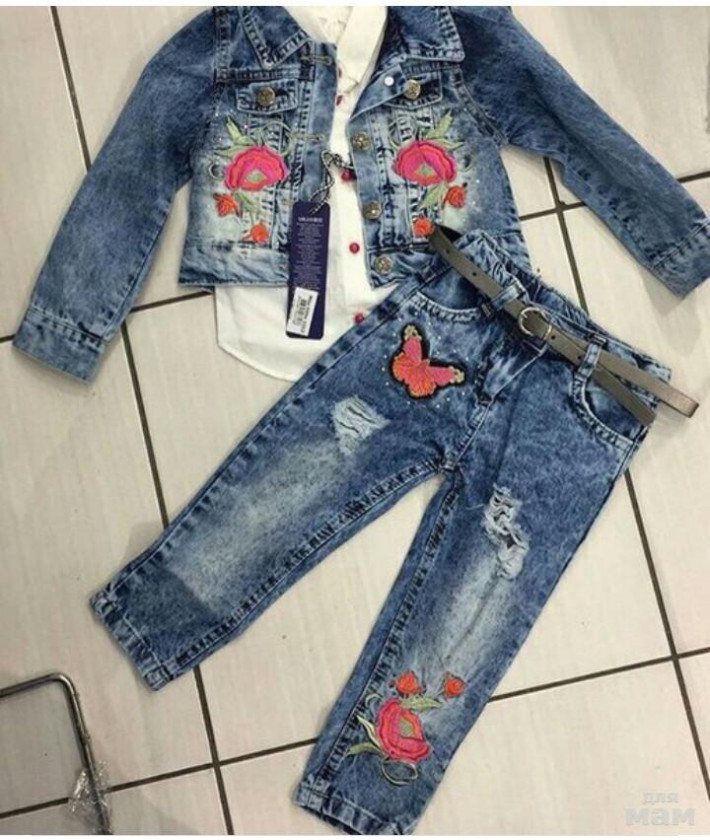 Очень красивый и стильный р. 4 замеры джинсы длина 60-61, шаговый 42,куртка длина 31, рукав 38/26, ог 30