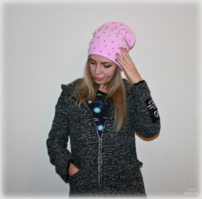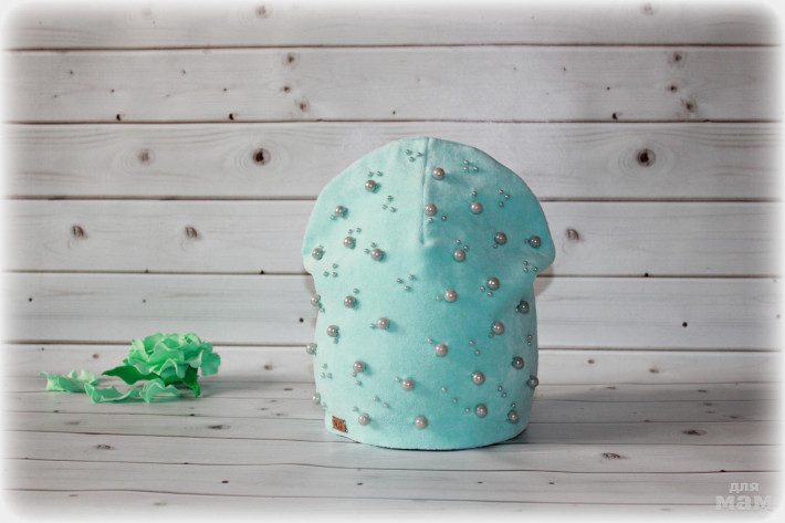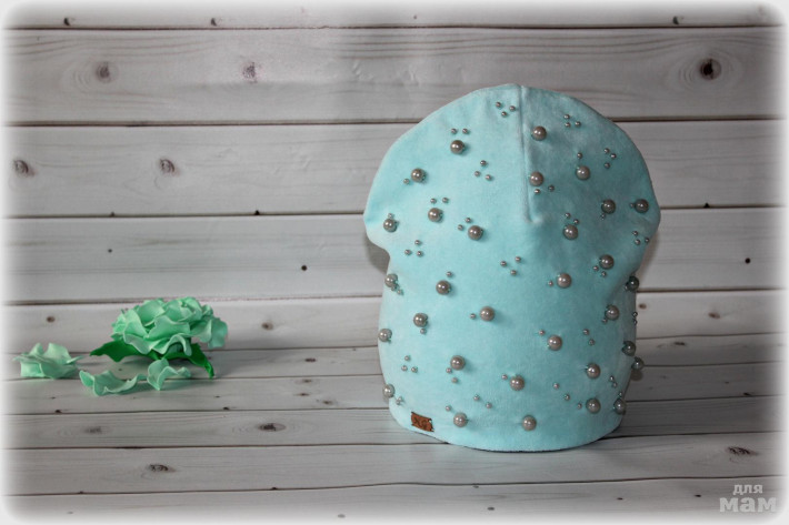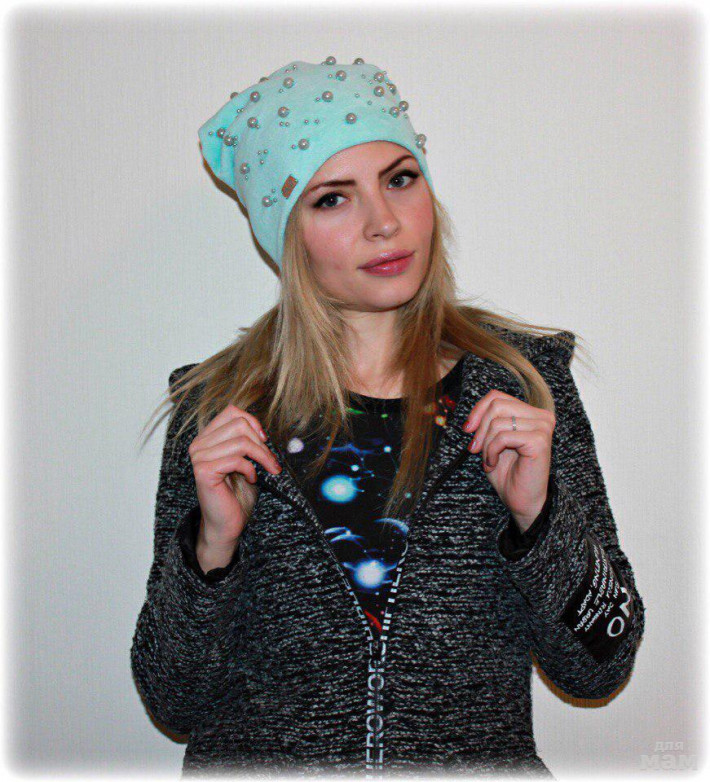 Шапки с россыпью из бусин( ментол и розовый). Стандартный взрослый размер.