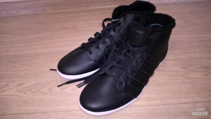 Классические стильные кеды adidas NEO Label CONEO Dslim Mid shoes с кожаным верхом. Три полоски из искусственной кожи; плоские вощеные шнурки; меховая подкладка; логотип adidas в тон сбоку и на заднике.