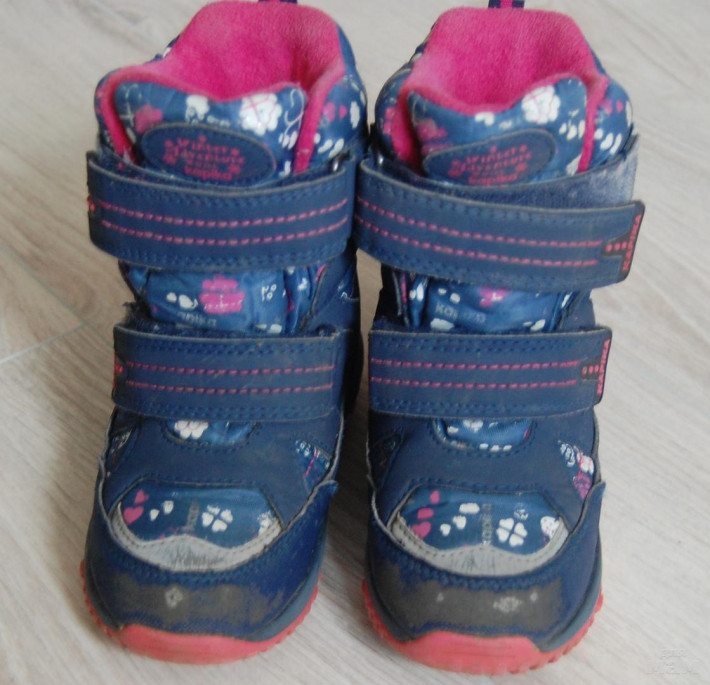 Продаю ботинки мембрана Капика размер 27, состояние среднее, есть потертости на мысах. Подкладка - иск. мех, очень теплые. При ходьбе моргают.