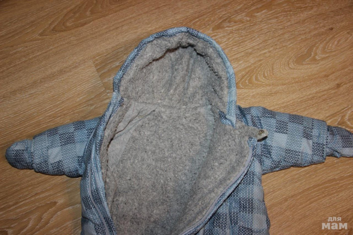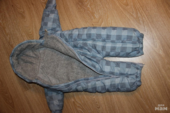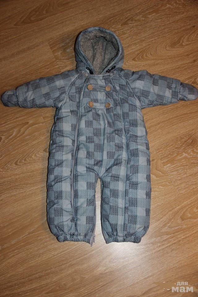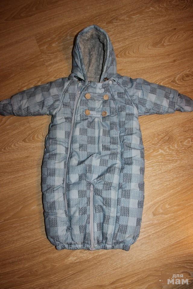 Теплый, удобный комбинезон тренсформер можно конвертом носить, можно разделить ножки. На фото показано, состояние отличное!Носили холодную осень и зимой, но когда очень холодно, еще в конверт из овчины укладывала в коляску.Размер идет 3-6мес, подойдет на рост от 68 до 74см.