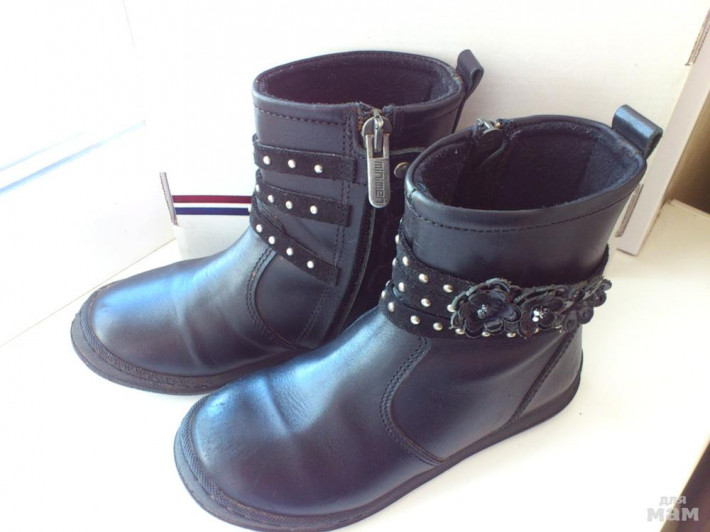 Утепленные сапожки Minimen, натуральная кожа, внутри типа флиса и утеплитель. Б/у в очень хорошем состоянии, носы несильно поцарапаны (краска не стерта, видно только вблизи, на фото видно как именно). После одного ребенка, носили не очень много, не стоптаны, без деформации, кожа хорошая, матовая, плотная. Размер 26 (мне показалось чуть маломерят). Цена 1700 плюс почта