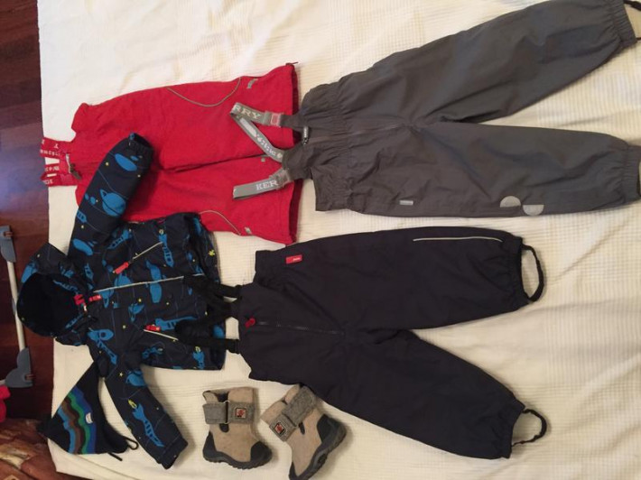 Комплект reima (куртка и синий полукомбинезон), размер 86, у куртки есть потертости на рукавах (фото могу прислать на почту), у брюк немного шершавые колени, состояние комплекта хорошее.