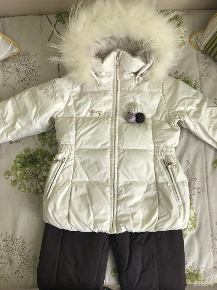 Продам зимний комплект размер 122, штаны одевали пару раз. Наполнитель пух/перо, цвет куртки молочный, штаны темно-коричневые, на штанах внизу плотная резинка. Почта в подарок