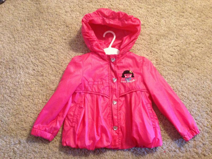 Состояние очень хорошее, капюшон отстёгивается, девочка из страз. Размер 18 m. одевали и в 2 года.