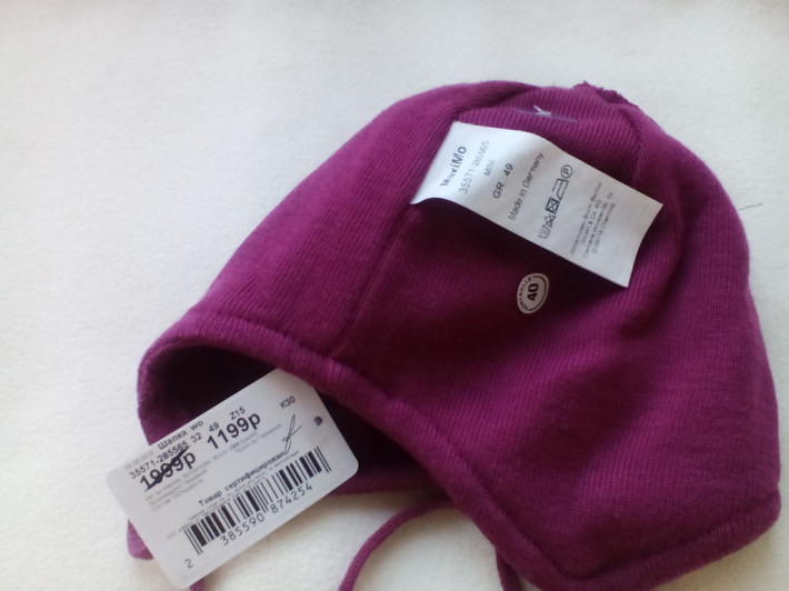 В наличии размера 49 идет до 3 лет и 51 идёт до 4-5 лет, фирмы MaxiMo Германия. 100% шерсть, подкладка шерсть. Украшена логотипом из страз. Шикарная. Носим с удовольствием уже 3 года эту фирму. Покупала за 1200 р. в Кенгуру. Цвет насыщенный малиновый.