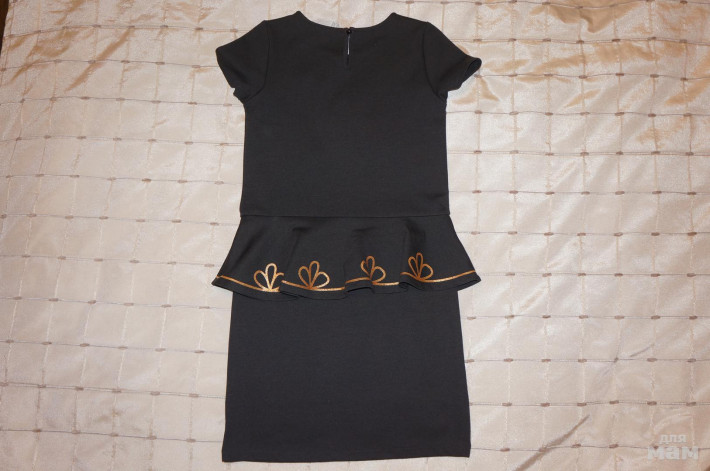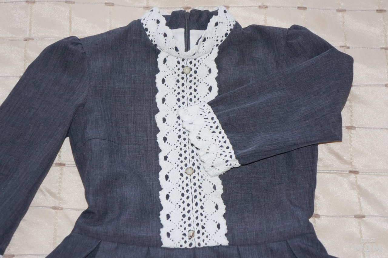 Очень красивое школьное платье , на подкладе х/б. Сидит очень хорошо.Не жаркое . В идеале. Размеру 146-152 соответствует.