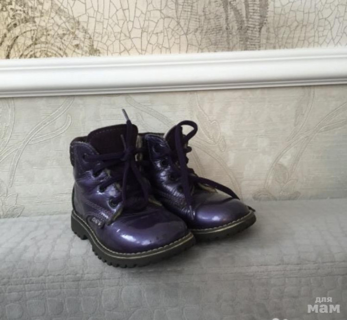 Очень удобные итальянские ботиночки Ciao Bimbi, подкладка тонкая овчина, размер 22. Нюанс: на мысах царапки на фото видно, при носке не заметно. Носили как в плюс так и в минус , не промокают . Стразы все на месте . Смотрятся замечательно.