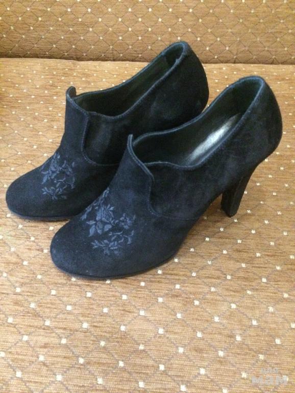 Ботильоны, чёрная замша , новые , были сшиты на заказ , вышивка . стоят без дела ((( стоили 3600 отдаю дёшево