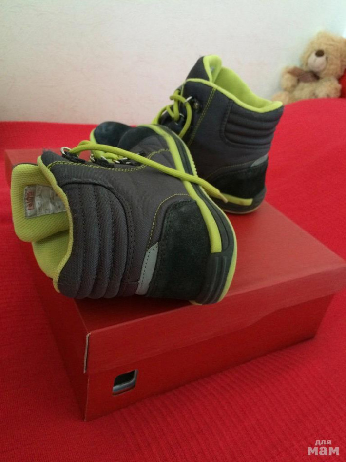 Ботинки Reima демисезонные, р-р 31 в хорошем состоянии. можно носить от 0 и до +10, в слякоть не промокают, отлично стираются в машинке. Новые стоят в районе 3500-4000р. Стелька 20,5см, но на ножку 19-20см.