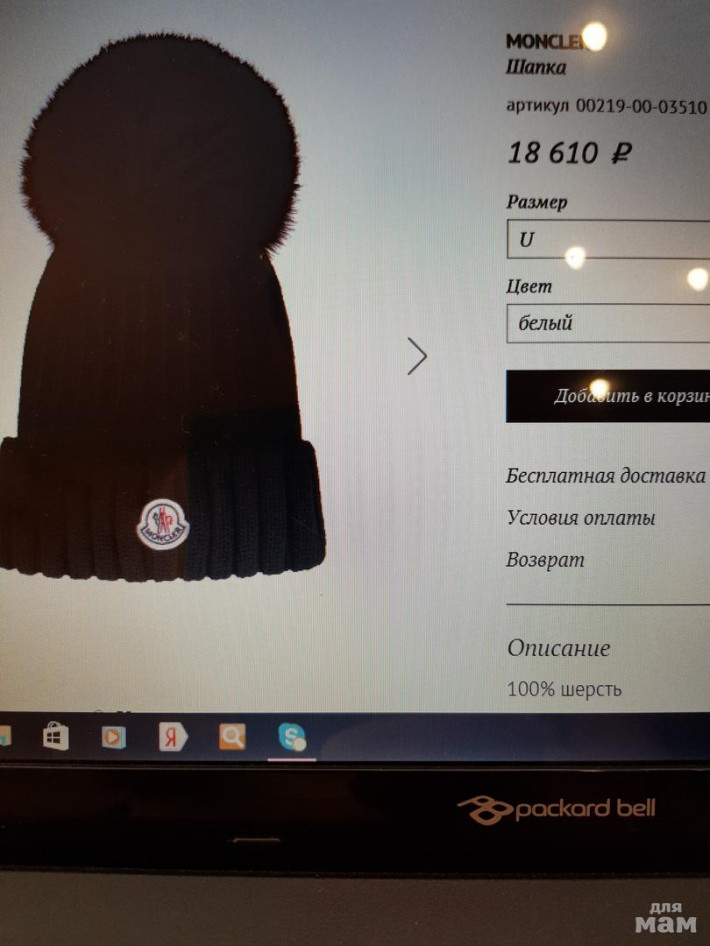 продам шапку монклер размер единый, оригинал, шерсть 100% , сомтояние в идеале.