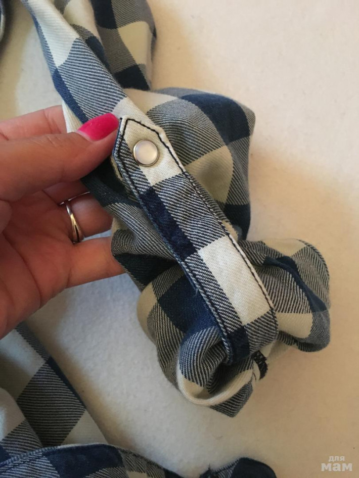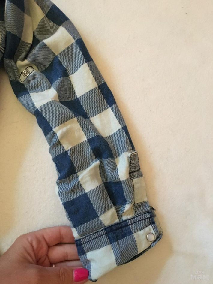 Очень приятное к телу, чистый хлопок, рукав как длинный, так и заворачивается и крепится на анопку( фото), размер 44, бирка на месте!