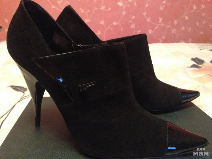 Ботильоны Giorgio Armani. Абсолютно новые. Размер 39, но немного маломерят, на мой взгляд. Замша, лак, очень удобные. 6000руб. (стоили 22тыс.)