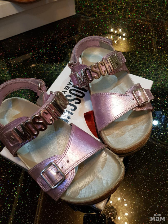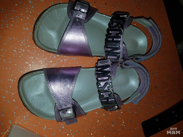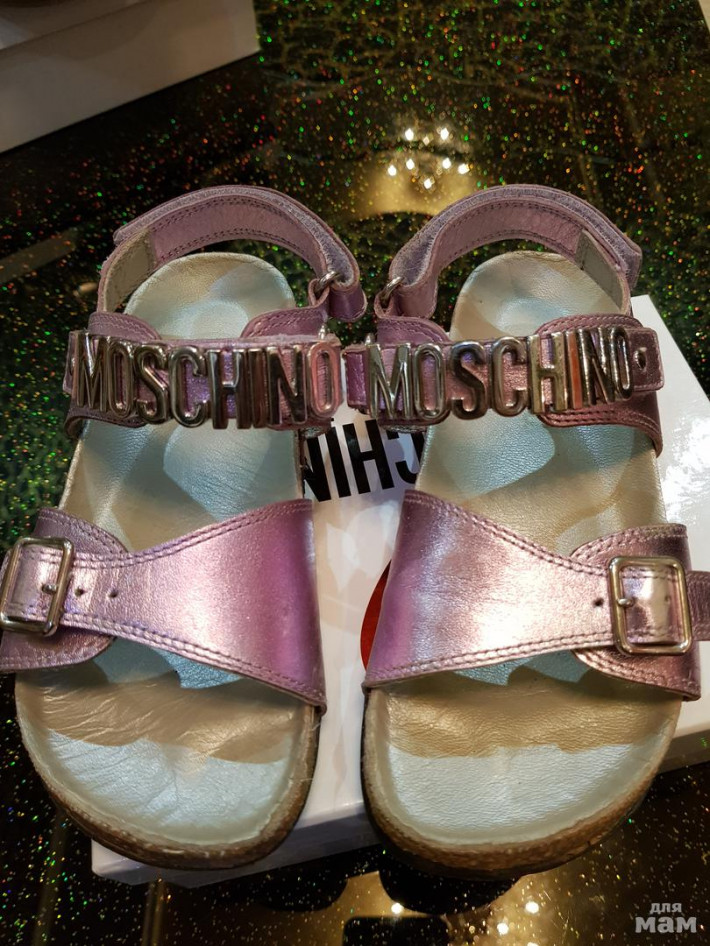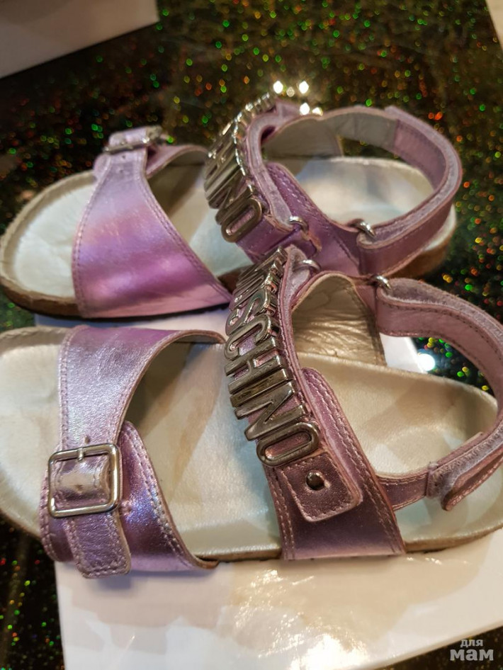 Босоножки Moschino, размер 31 , на ножку 19-20см. Б/у немного. Состояние ооочень хорошее! Цена 2000руб. Натуральная кожа, ортопедическая комфортная стелька. Есть немного притертостей, до серебра, на ножке не видно, перламутр всё скрадывает))) Цвет - нежная сирень