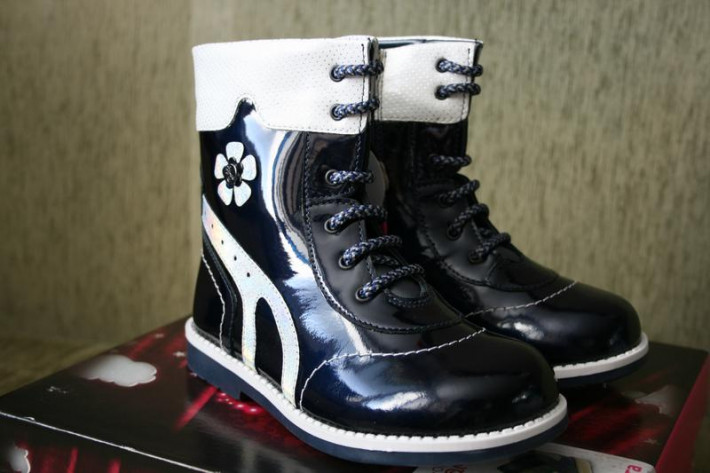 Новые ботинки, нат.кожа/шерст.текстиль, цвет темно-синий (лак), сбоку молния.