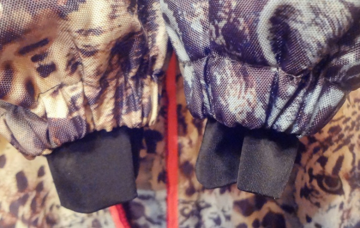 Утеплитель Термолайт 140 г + флис до талии, флис плотный, не тонюсенький. В рукавах и ногах флиса нет. Низ комбеза НЕ черный, а темно-темно-синий, если смотреть на солнце. Сердечко на штанине сзади-светоотражайка (очень яркое)