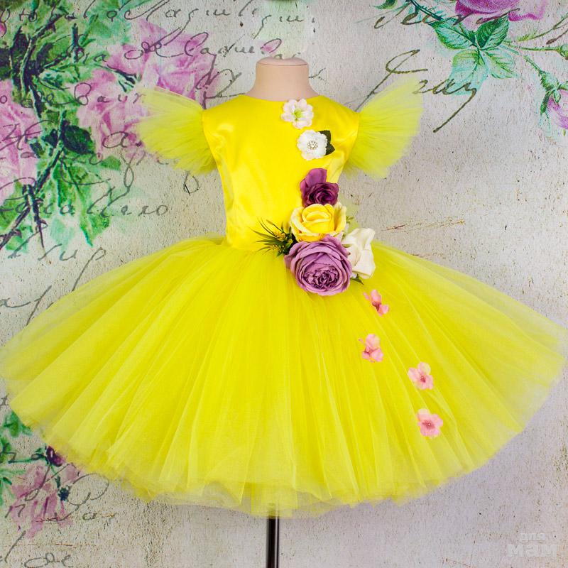 Нарядное платье для девочки "Кукла" лимонного цвета.