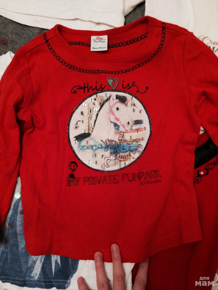 Водолазка Pinetti (тоненькая), лонг с обманкой болеро Fleole с небольшим начёсиком, красивущий лонг с туфелькой, стразы, Deloras, лонг с воротником-стоечкой с короной, стразы, Aziz Bebe, лонг с лошадкой красный s.Oliver (92-98), лонг с девушкой, пайетки, Acoola.