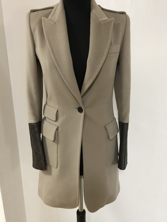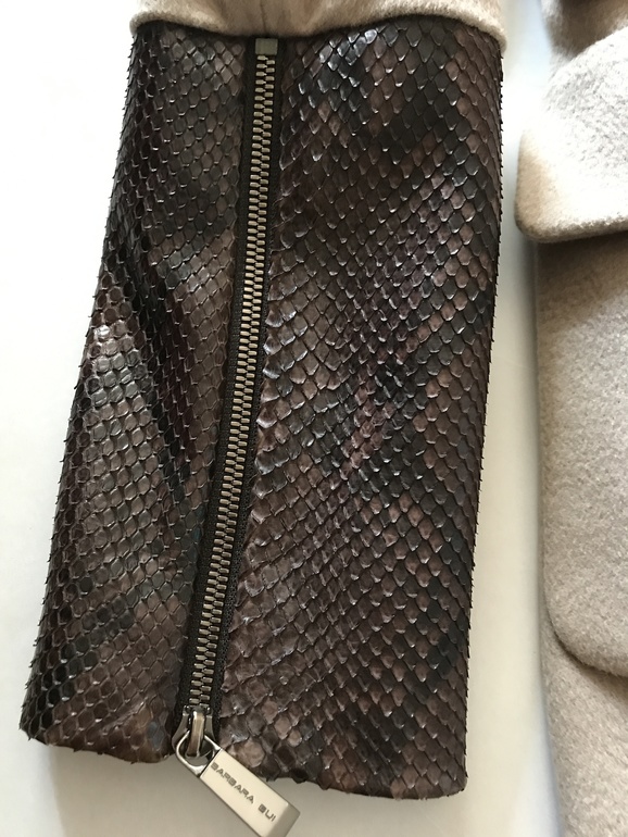 Бежевое пальто BARBARA BUI . Размер 36 (XS),15% кашемира и 85% шерсти . Рукава-натуральный ПИТОН! 45 тыс