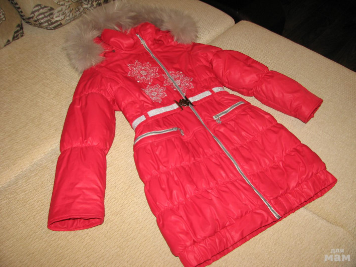 Зимнее пальто Duwali 128-134, украшено вышивкой в виде снежинок, до талии утеплено флисом, рукав можно подвернуть.