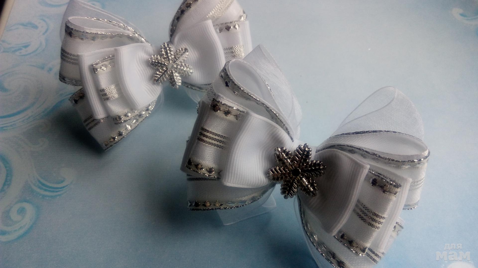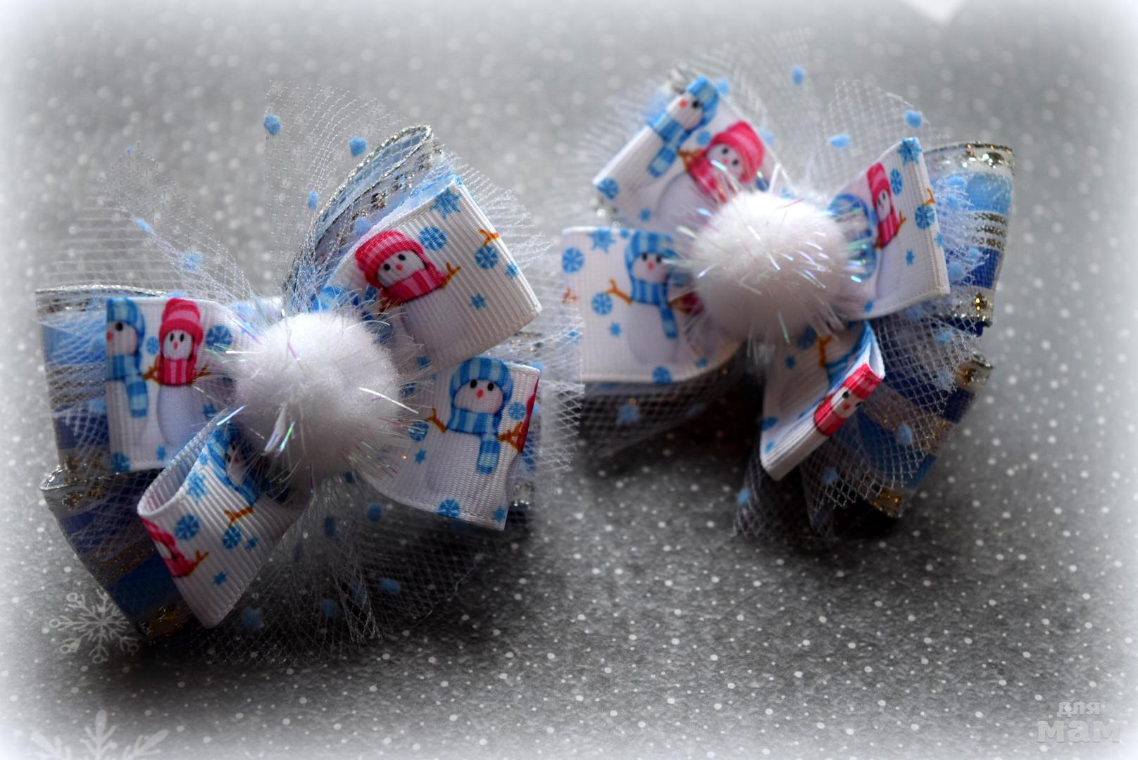 Новогодние бантики с милыми снежинками. Размер бантиков 7-8 см.