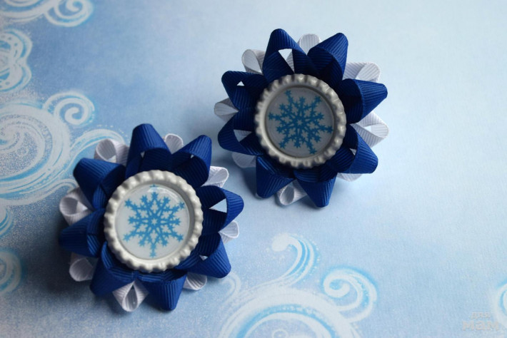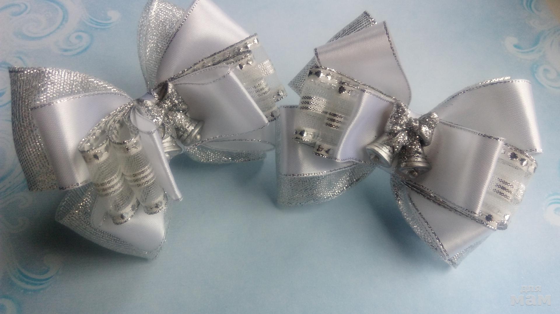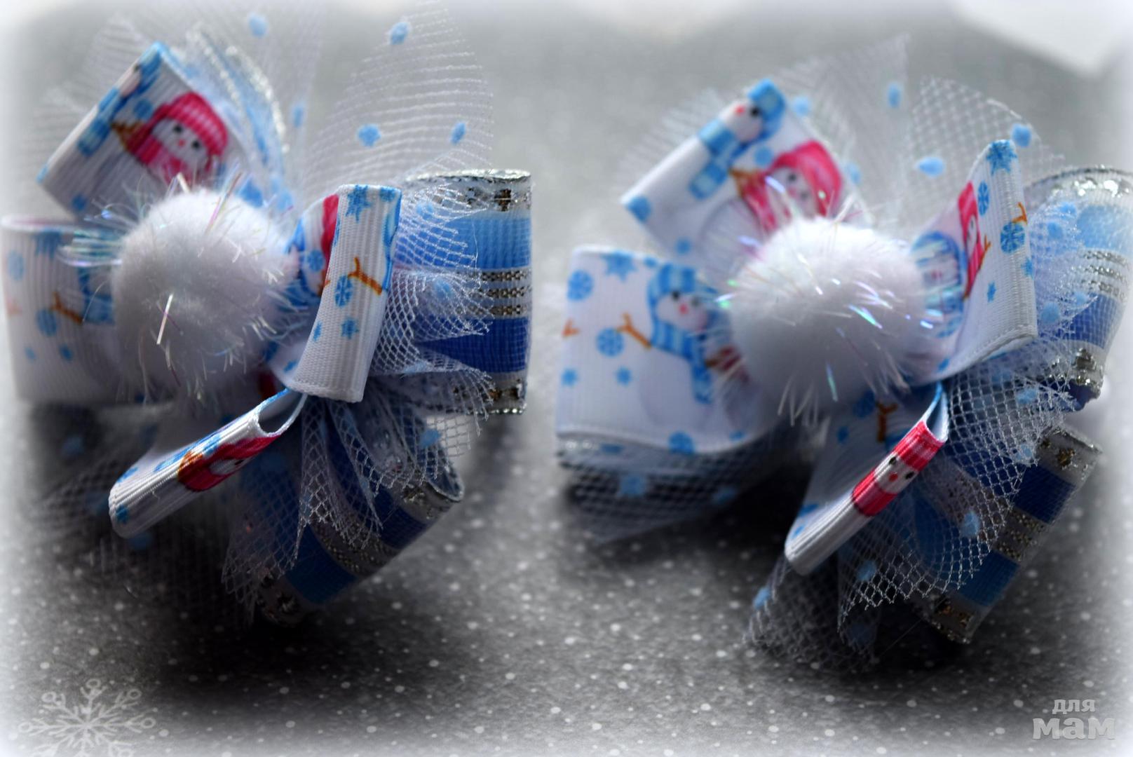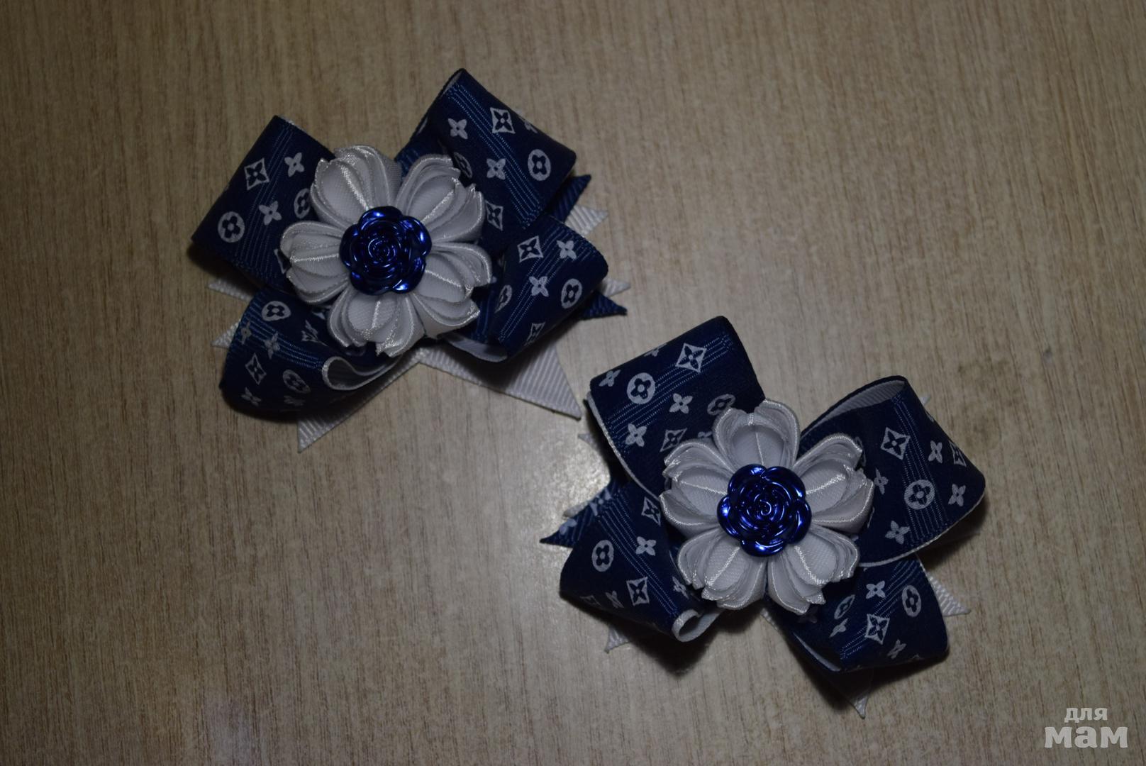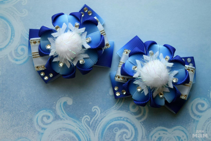 Очень нарядные бантики для наряда в синем цвете или для тех, кто любит украсить свои школьные будни перед зимними каникулами. Ведь в это время праздник уже во всю летает в воздухе, а тебе еще нужно писать диктанты и решать контрольные)))))))))))