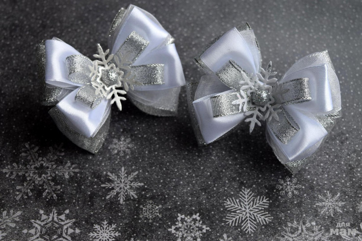 Нарядные бантики "Серебряная снежинка" 8-9 см