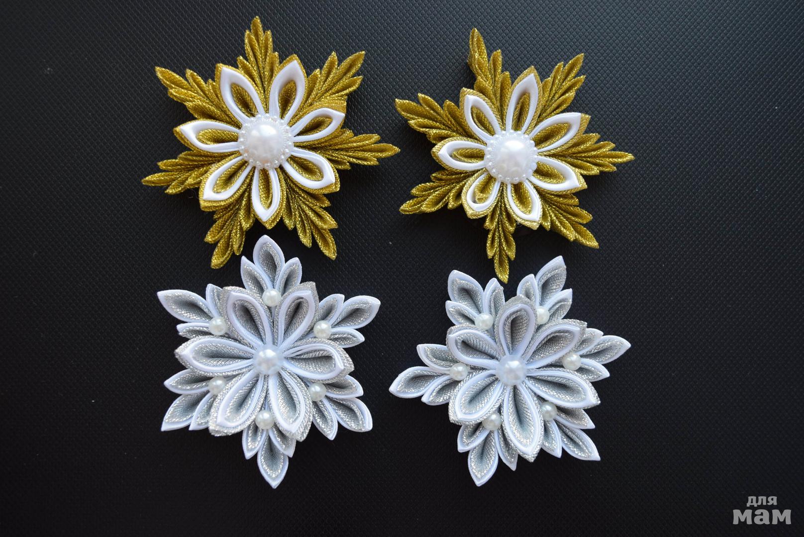 Очень большой и нарядный бант с красивучей снежинкой - серединкой. Размер банта 12 см. Основу потом будем вместе с вами. Можно посадить на ободок, можно сделать на "автомате", можно добавить ленты по типу этого