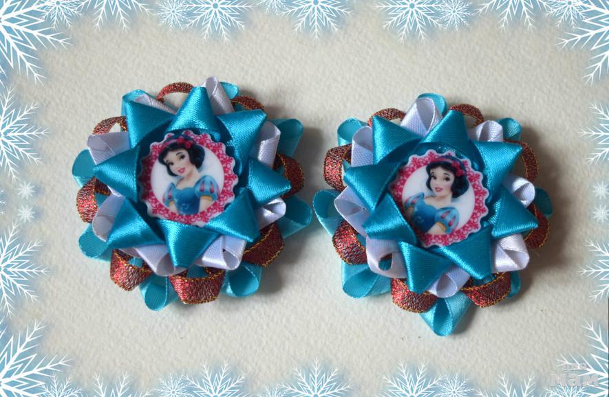 Новогодние бантики с милыми снежинками. Размер бантиков 7-8 см.