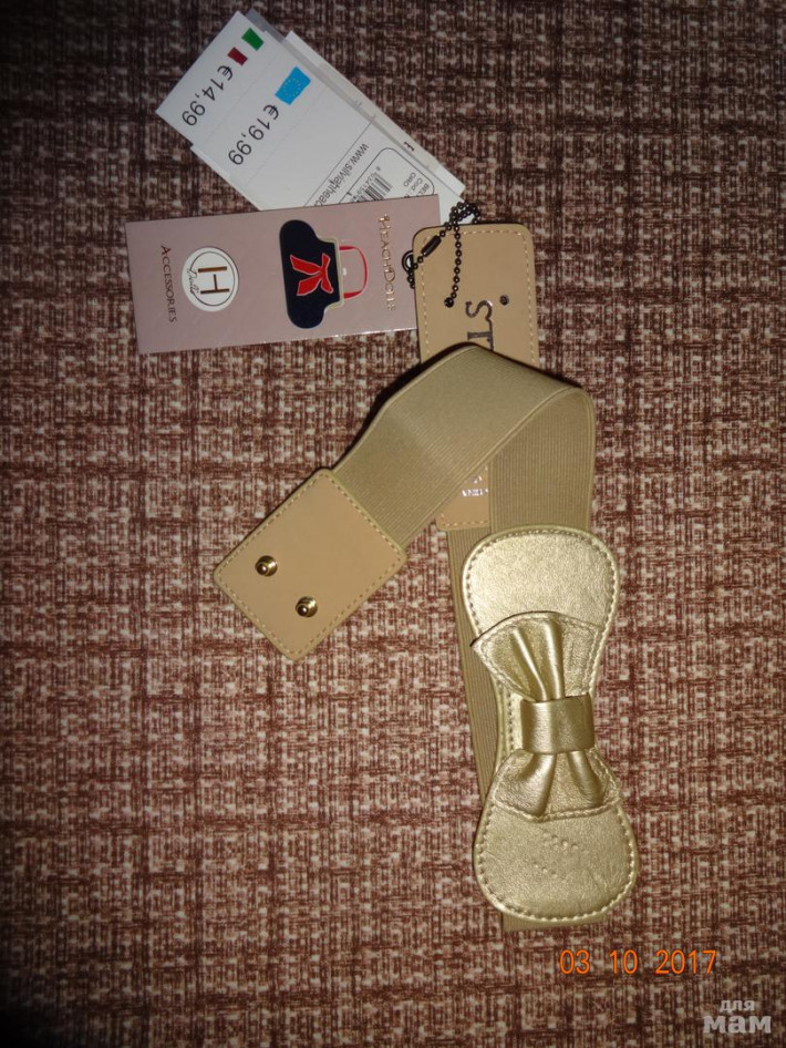 Доброе, от края до края 65см, от начало резинки и до конца резинке-47см, сама золотая штучка где дырочки -11.5см