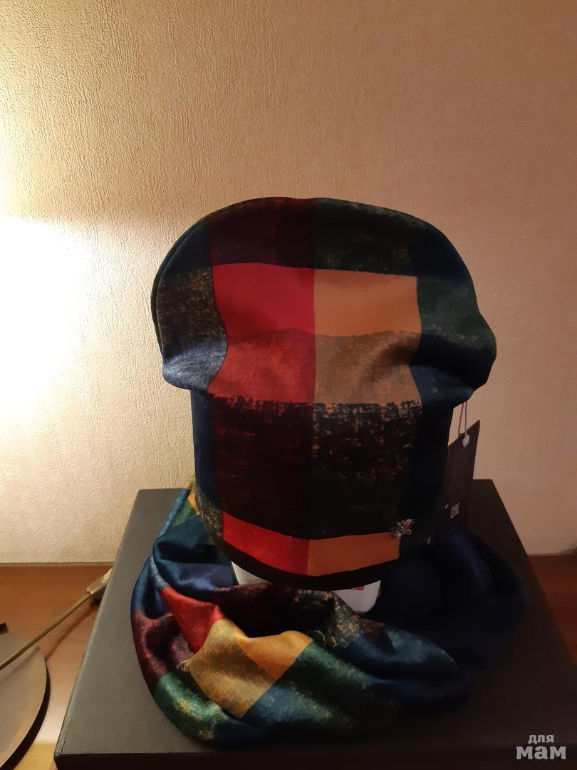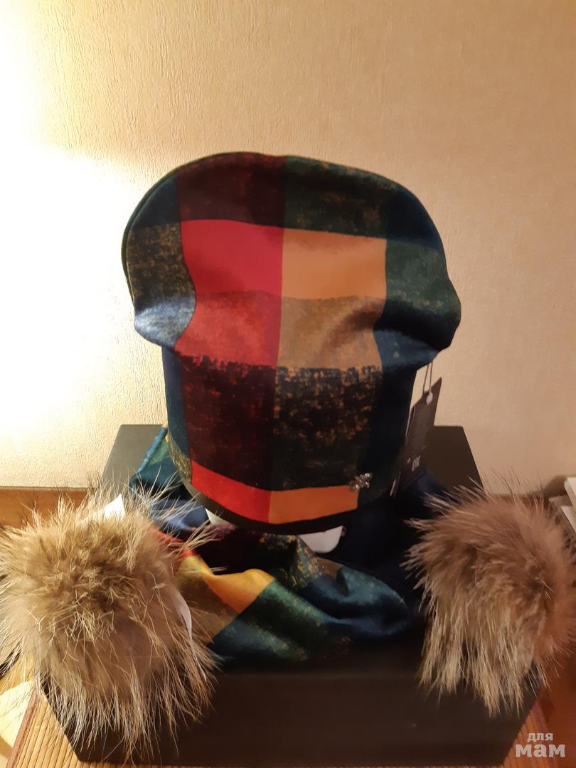 Новинка в настоящем бархате! Комплект: шапка с натуральным большим отстегивающимся помпоном, внутри тоненькая флисовая подкладка; шарф-снуд двухцветный (однотонная сторона и цветная), можно носить как капюшон или вместо шапки!