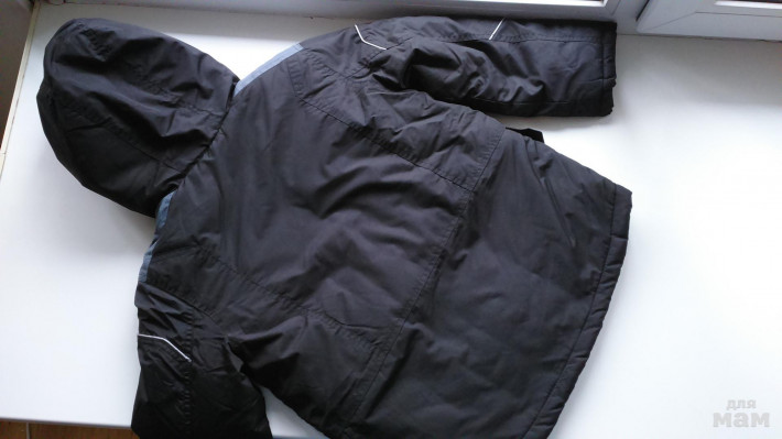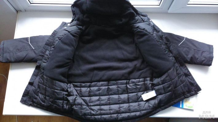 Куртка теплая (на синтепоне), внутри проходит флис, что дает дополнительное тепло. Цвет черный. Длина - 58 см , ширина в груди - 47 см, длина рукава от плеча 45,5 см