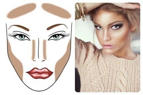 Шаг 1 Нанесите хайлайтер на скулы, середину лба, под глазами, по центру носа, на брови и вдоль линии подбородка.