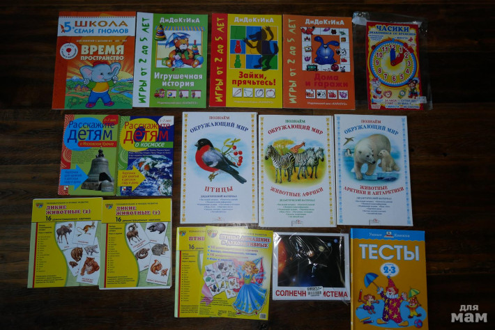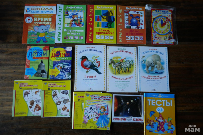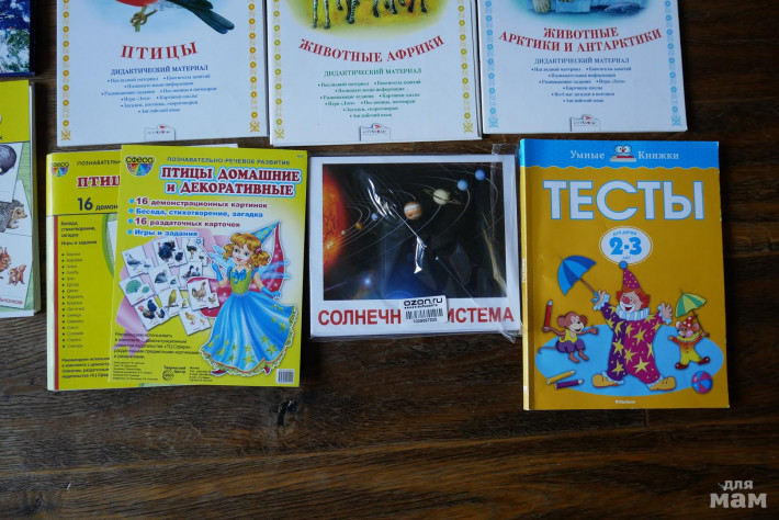 Верхний ряд все новые по 40р., часы 25р. Наборы карточек (7 шт) и папки с дидактическим материалом (3 шт новые) по 50р. Тесты 2-3 года, новые, 80р. Самовывоз с ул.Крупской (м.Университет) или могу отправить почтой.