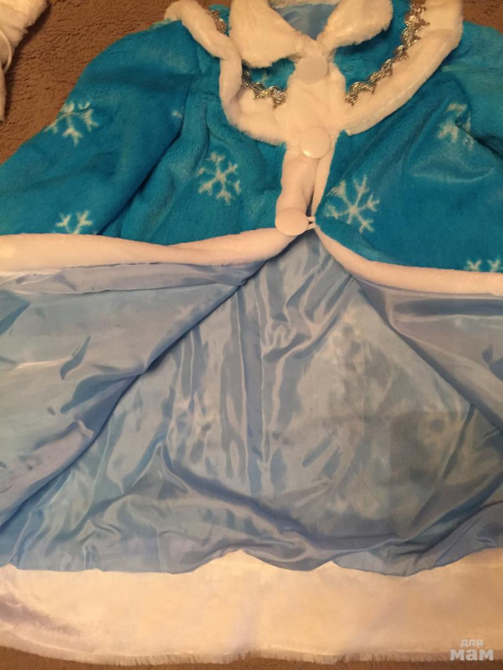 Костюм Снегурочки. В идеальном состоянии. Размер 134. В комплекте: шубка, шапочка и муфта на веревочке. Застегивается на 3 большие пуговицы. Очень удобно на платье сверху или на школьную форму (покупала специально в школу на праздник, чтобы удобно и быстро надевать было). 600руб.