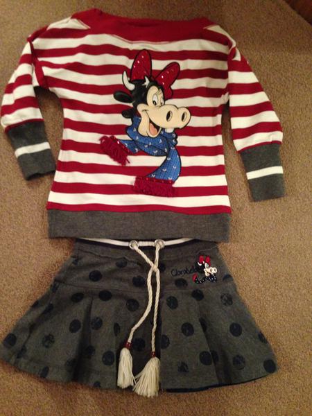 ДД! Как же мне нравятся коровки! А размер не могу найти наш... На какой рост в полоску свите и юбки? У нас 115 сейчас - мало будет?