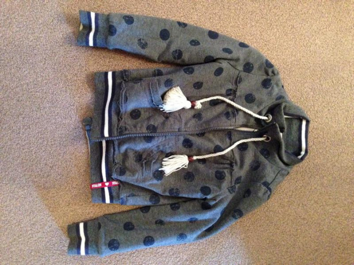 Светлая - это двусторонняя кофточка на молнии, с другой стороны - она в горох.