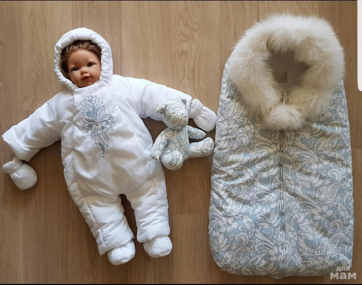 Размер рост от 50 до 65(за счёт отворотов на рукавах и ножках). Подойдет девочке и мальчику. Очень нарядный и теплый. Зимой носить комплектом, весной можно комбинезон отдельно.